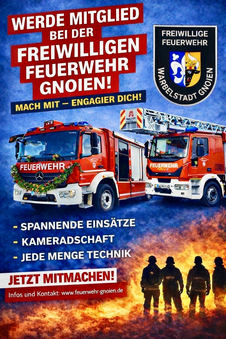 Die Freiwillige Feuerwehr Gnoien steht seit ihrer Gründung im Jahr 1887 für Engagement, Verlässlichkeit und Gemeinschaft. Als Stützpunktfeuerwehr im Landkreis Rostock übernehmen wir Verantwortung rund um die Uhr, ehrenamtlich und mit moderner Technik.